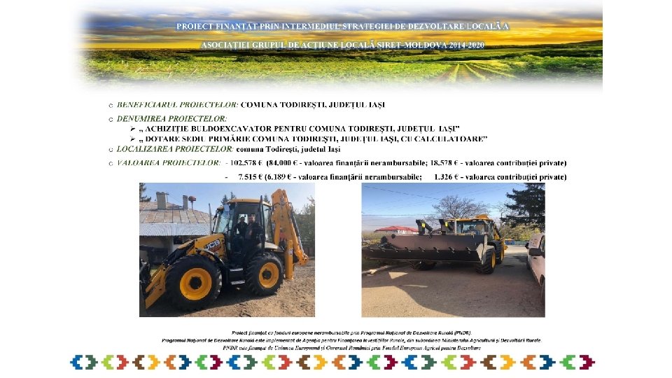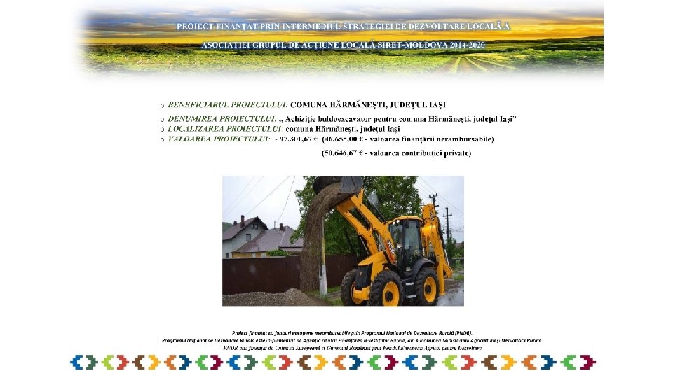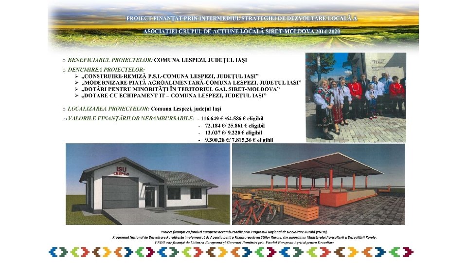 M 05 Diversificarea activităților non-agricole în mediu rural Măsura Denumire proiect Valoarea publică alocată pe sesiune pe proiect EURO 85. 000, 00 Construire service auto- ALINA JUGRIN M 05 Inființare linie de producție de combustibil din biomasă în comuna Cotnari, judetul Iasi- DOLHĂSCU TEOFIL EURO 156. 973, 00 71. 970, 00