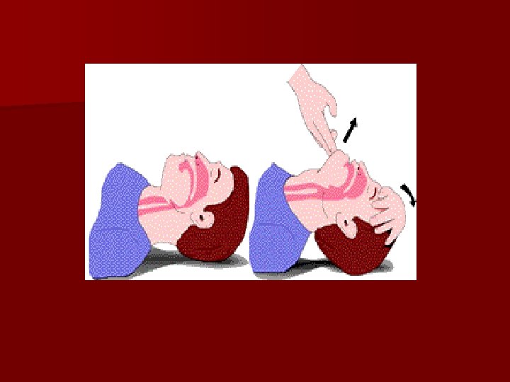 AIRWAY Open the airway by the head tilt / chin lift maneuver for all victims n Health care personnel use: – Jaw thrust in trauma patient – CHIN LIFT n
