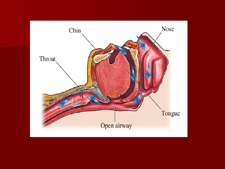 AIRWAY Open the airway by the head tilt / chin lift maneuver for all victims n Health care personnel use: – Jaw thrust in trauma patient – CHIN LIFT n