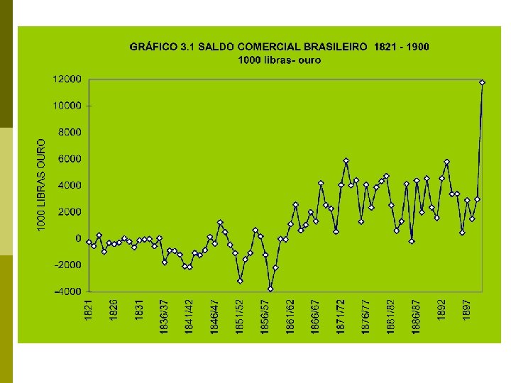 Efeitos sobre Balanço de Pagamentos p Tendências anteriores na Colônia não eram positivas, n n salvo momentos de “falsa euforia” , exportações de produtos primários enfrentava de dificuldades de concorrência Mas: do ponto de vista do Balanço de pagamentos colonial era de relativo equilíbrio do Balanço de pagamentos, p p existe redução relativa das importações coloniais Com a vinda da família Real e demais consumidores: tendência a desequilíbrio do Balanço de pagamentos n Não impactos significativos sobre exportações p Abertura dos Portos – melhora condições de venda dos produtores locais, mas não há “novos” mercados § Dificuldade com bloqueio continental, depois melhora p n Tratados comerciais – também não abrem flancos novos de exportação Impactos significativos nas importações p p p Demanda autônoma da Corte (sem contrapartida nas exportações) Reduções tarifárias Ampliação da demanda por escravos (para produção no mercado interno e escravidão “doméstica”