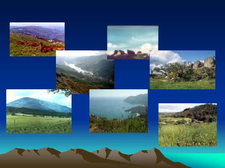 • A Norte do rio Tejo, predominam as montanhas e os planaltos • A Sul do rio Tejo, surgem vastas planícies, embora haja algumas pequenas regiões com montanhas pouco elevadas • No Litoral há terras baixas • No Interior as terras são mais altas