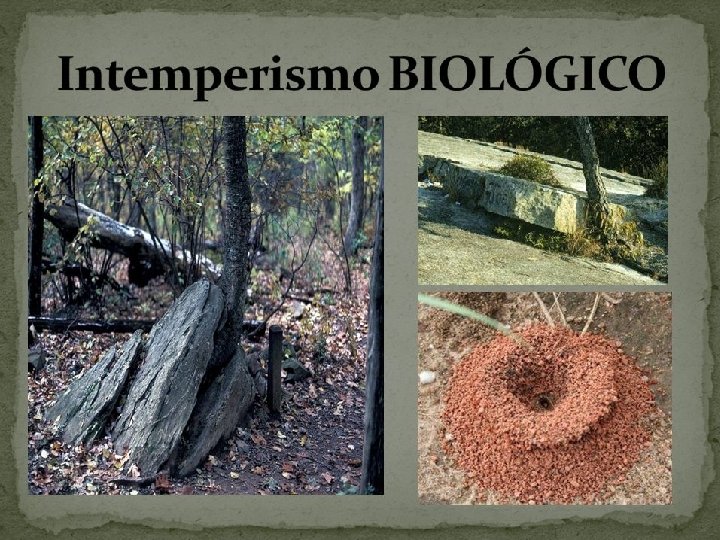 INTEMPERISMO BIOLÓGICO Consiste na desagregação física e na decomposição química das rochas causadas pelos organismos vivos
