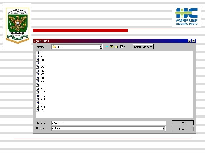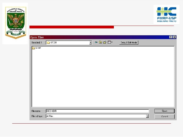 Estrutura do DICOM File Meta information • Meta info version (0 x 0001) • SOP class (DICOMDIR) Directory information • Xfer Syntax (Ex: Little Endian Explicit) Patient 1 directory Record • Pointer to other patients (Pat 2, Pat 3. . ) • Lower level dir (STUDY 1, STUDY 2. . . ) • Name • ID • Date of Birth • Sex Study 1 directory Record • Pointer to other studies (Stud 2, Stud 3. . ) • Lower level dir (Series 1, Series 2. . . ) • Description • UID • Date and time • Study ID Image 1 directory Record • Pointer to other studies (Image 1, Image 2. . ) • No lower level dir • File ID (Ex: XA 0001. dcm) • Xfer Syntax UID in file (Litle End. , JPEG, etc. . ) • Image Type (Original, Primary, Planes. . . ) • Image number (Ex: 102) • Samples per pixel (1) • Photometric interpretation (Monochrome 2, . . . ) • Number of Rows, Columns, etc. . . • Descriptor (Ex: README) • First dir Record • Last dir Record Patient 2 Patient 3 Study 2 Study 3 . . . Image 2 . . Image 3 . . . Patient x . . . Study x . . . Image x . . .