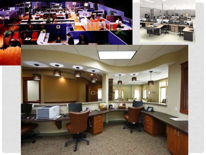 TATA LETAK KANTOR • Tata letak kantor bisa diatur di sekitar proses atau bisa juga di sekitar produk atau diantaranya. • Kantor bisa dianggap sebagai organisasi seluler yg diatur dan diatur ulang ketika prosedur dan jumlah produksi berubah • Pada kantor konsultan teknik, konsultan utama hrs dekat dengan para insinyur, tdk terlalu depat dgn sekretaris dan pusat arsip, jauh dari mesin fotocopy dan gudang. • Ada pertimbangan yg terkait dgn kerja kelompok, wewenang dan status • Haruskah semua ruangan ber. AC, semua karyawan menggunakan pintu masuk, kamar kecil, loker dan kantin yg sama ? • Ada dua trend besar saat ini : • Penggunaan teknologi spt : telepon seluler, faksimili, internet, home-office, laptop dan PDA yang memudahkan informasi. • Kantor maya (virtual office) yang menciptakan hubungan dinamis atas ruang gerak dan pelayanan