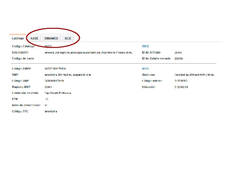 GRP DNMA Código ATC SNOMED CT Registro M. S. P. SICE-ACCE U. C. A. Código ECRI Sistemas informáticos de ASSE