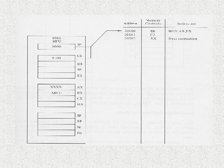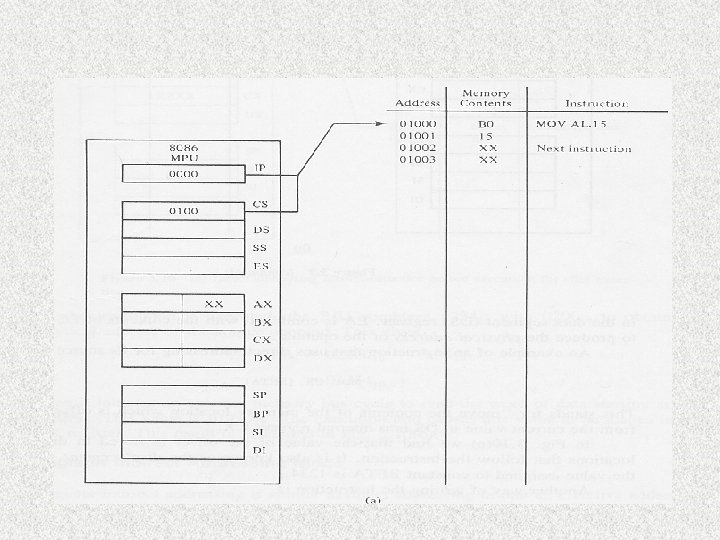 Example • Machine code for mov AL, 00 H • B 4 00 (2 bytes) • After assemble, the value B 400 will be stored in the memory • When the program is executed, then the value B 400 is read from memory, decoded and carry out the task