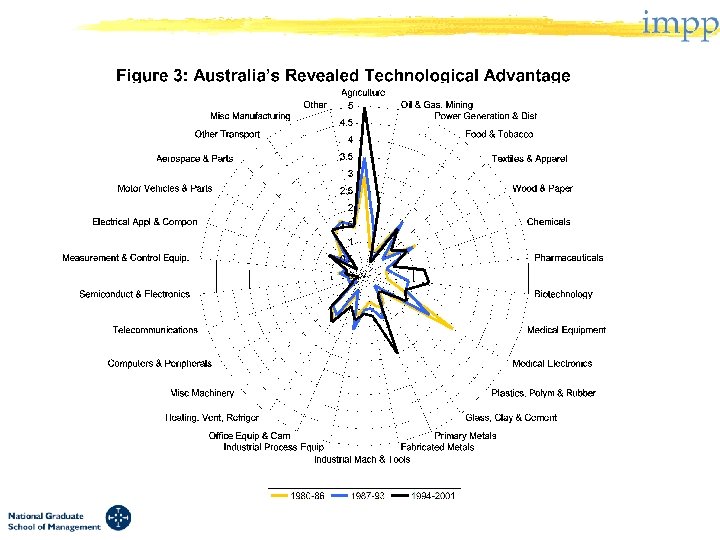 The Laggard Perspective on Australia High dependence on natural resources- 80% of the top fifteen export products are resource-based commodities with a low level of processing Failing to develop new areas of specialisation and growth Productivity growth in the 90's the result of one-offs: micro-economic & ICT Weaknesses in new firm formation The poor performance in R&D and patenting signals the weaknesses in management, scale and international positioning of Australian industry. Declining position in many ‘high tech’ sectors indicates the extent to which Australia is being left behind the frontier of innovation and growth- Large and growing trade deficit in ICT products and services One of the lowest in the OECD in – – – BERD investment in venture capital; International patenting activity (per mill. Population)