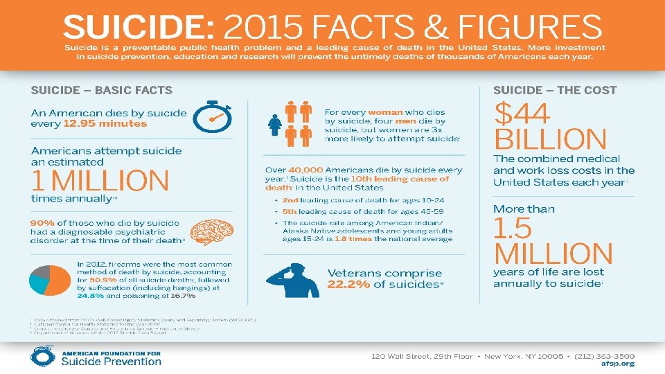 Social suicidal risk factors: Ø Cultural and religious beliefs (e. g. , belief that suicide is noble resolution of a personal dilemma). Ø Local epidemics of suicide. Ø Barriers to accessing mental health treatment. Ø Easy access to lethal methods. Ø Unwillingness to seek help because of the stigma attached to mental health and substance abuse disorders or to suicidal thoughts.
