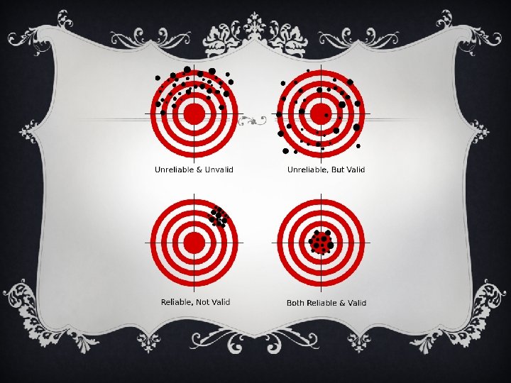 RELIABILITY v Reliability is used to describe the overall consistency of a measure. A measure is said to have a high reliability if it produces similar results under consistent conditions.