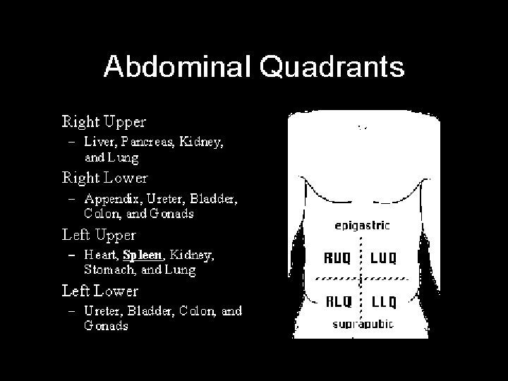 Assessment (objective) • • Vitals signs Feel for hard spots/distention(palpitate 4 quadrants) Skin color Edema Abdomen distention Wheezing Weight Loss Stool color, consistency, presence of ascites, frequency, blood, and last BM • Hematemesis