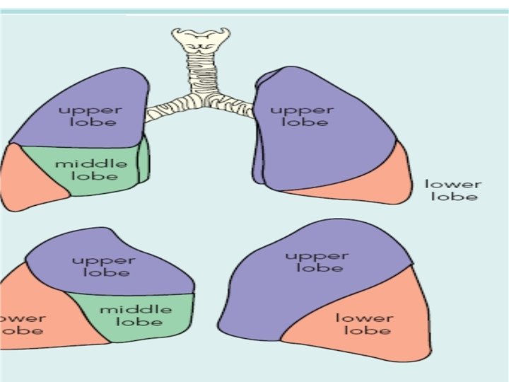 l l The right lung is divided into three lobes (upper, middle, and lower) the left lung into two lobes (upper and lower) The structures of the chest wall (ribs, pleura, muscles of respiration) are also essential