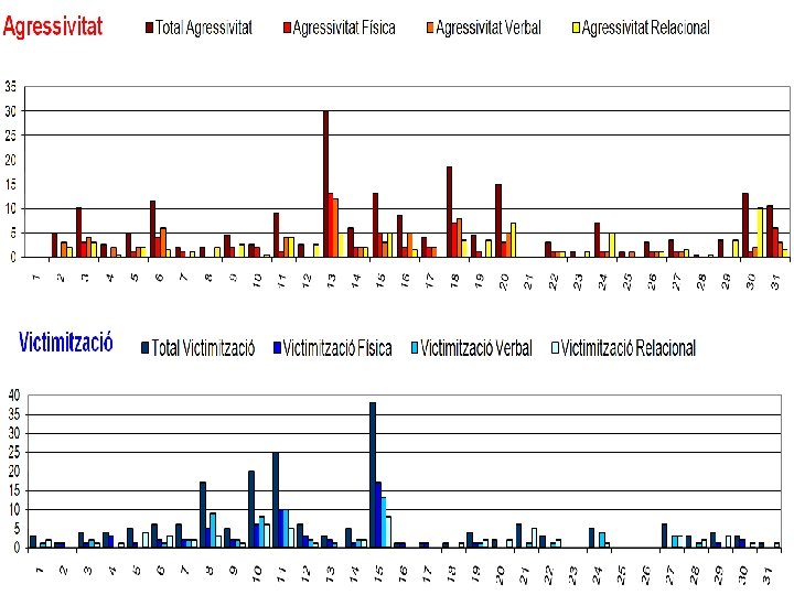 Així, quan podem dir que es dóna una situació d’assetjament? • Conductes d’agressió física, verbal o relacional cap a un o cap a varis alumnes • Mantingudes en el temps • Desequilibri de poder. L’alumne/a es troba en situació d’evident inferioritat respecte a un grup d’alumnes • Existeix una intenció d’humiliar o d’agredir l’alumne/es que se sent victimitzat.