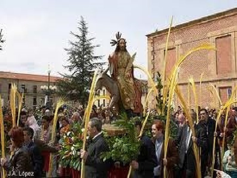 Dans l'antique Judée, les héros de guerre et autres personnalités charismatiques étaient accueillies dans les villes par une foule en liesse agitant des rameaux de palmiers et des branches d'olivier. C'est ainsi que Jésus-Christ fut reçu à Jérusalem, lors de la phase finale de sa prédication. Aujourd'hui, en souvenir de cet événement, lors de la procession du Dimanche des Rameaux (Domingo de Ramos), des palmes de palmier et des rameaux d'oliviers sont disposés sur les trônes sculptés simulant l'entrée de Jésus-Christ à Jérusalem. De même, la foule dispose ces mêmes objets dans leurs balcons, spécialement si ceux-ci se trouvent sur le trajet d'une procession.