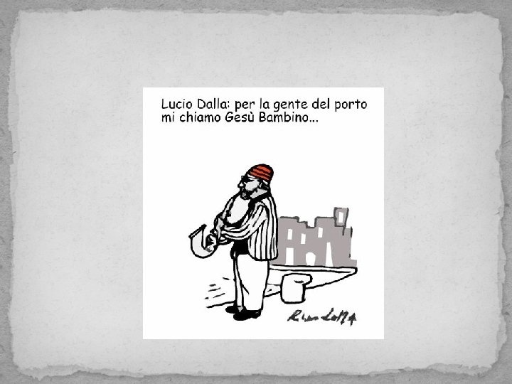 � Et ce fut peut-être par jeu ou par amour � E forse fu per gioco o forse per amore � che mi volle chiamare come nostro Signore � Della sua breve vita il ricordo più grosso � è tutto in questo nome � che io mi porto addosso � E ancora adesso che gioco a carte e bevo vino � per la gente del porto � mi chiamo Gesù bambino � e ancora adesso che gioco a carte e bevo vino � per la gente del porto � mi chiamo Gesù Bambino � Qu’elle voulut m’appeler comme notre Seigneur � De sa brève vie, le souvenir le plus important � Se trouve tout dans ce nom � Que j’endosse � Et même maintenant que je joue au cartes et que je bois du vin � Pour les gens du port � Je m’appelle Bébé Jésus