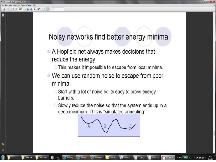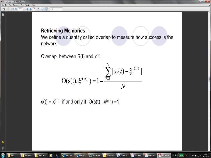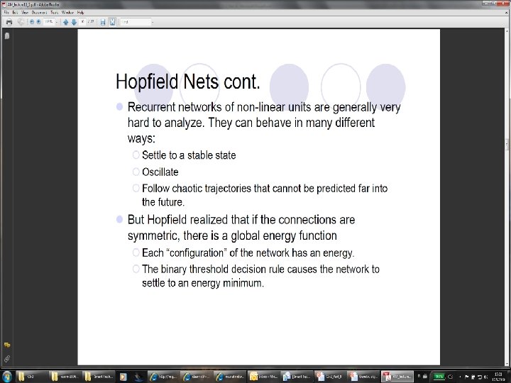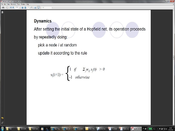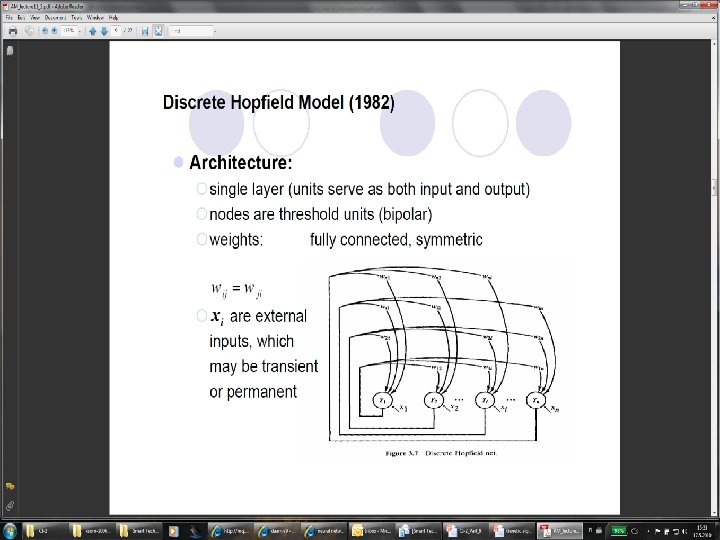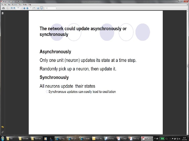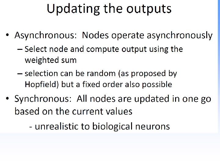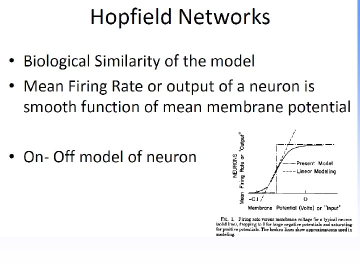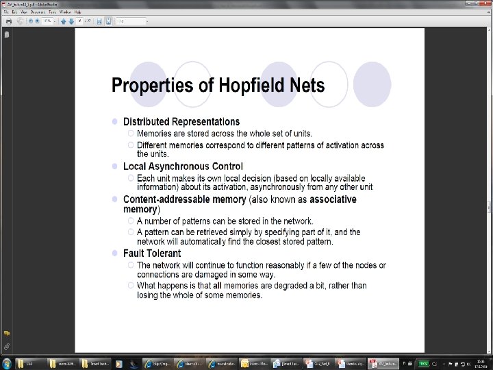 Modeling Memory • Two important points – Stores a set patterns and recalls the one closest to initial position – Minimum energy state is reached • Properties of network – Described by state vectors – Has a set of stable states – Network evolves to reach stable state closest to initial state resulting in decrease of energy notes from http: //www. cs. ucla. edu/~rosen/