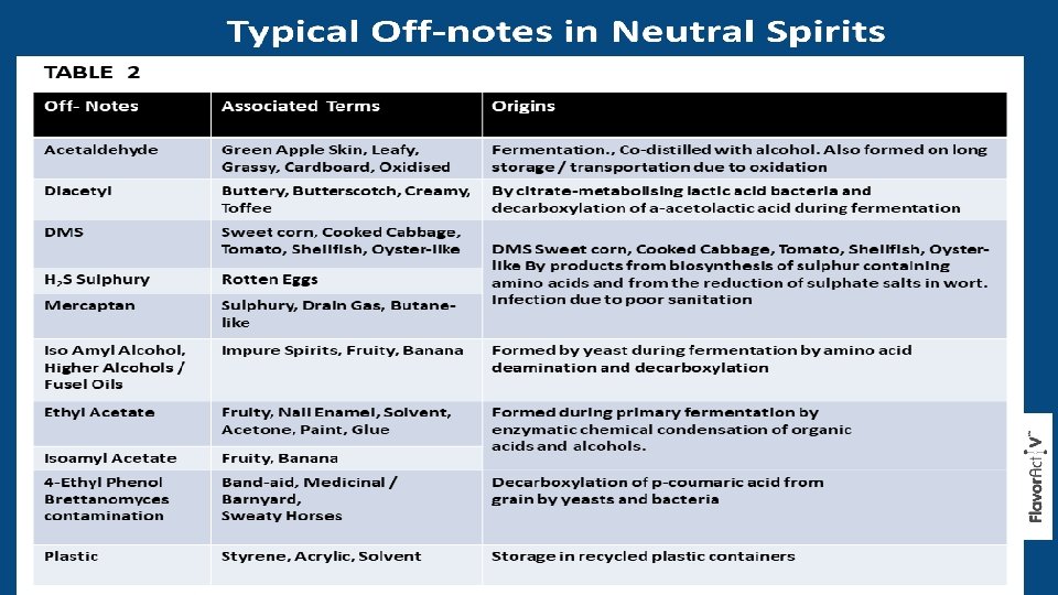 Contents • Neutral Alcohol - Quality Imperatives • Off-notes & Specifications • Fermentation & Distillation Imperatives • Monitoring & removal of congeners traces • Effective Analytical Methods • Sensory Evaluation Methods • Sensory Proficiency