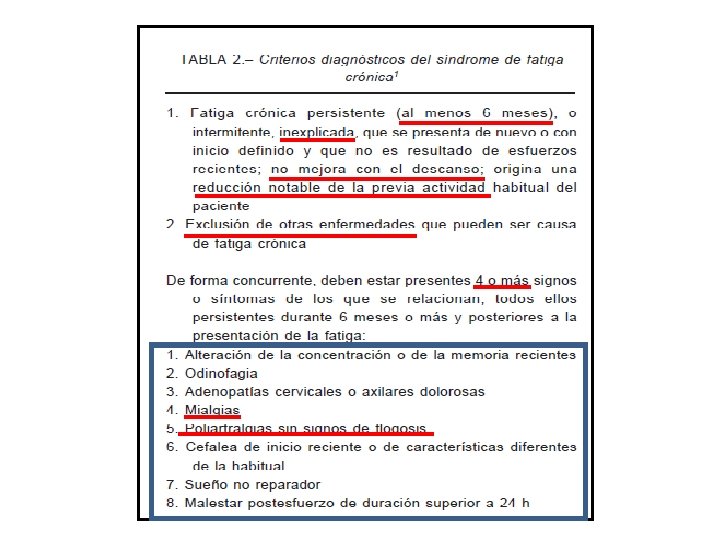 Síndrome de Fatiga Crónica • Antecedentes de trauma infantil: – aumenta 6 veces el riesgo de SFC. • Abuso sexual, emocional, abandono, violencia. • Arch Gen Psychiatry. 2009; 66(1): 72 -80.