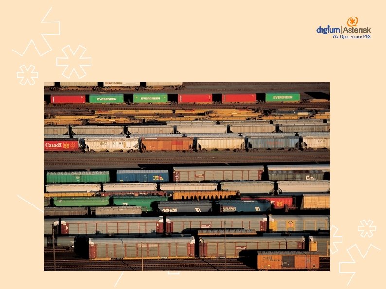 Asterisk Functionality – Because of OSS model Most PBX Features Most major protocols Additional applications • Vo. IP Softswitch • Conference Bridge Some highly specialized features contributed • e. g. “Alarm Receiver Panel”, home automation Myriad of third-party plug-in Interoperable • Commercial & Open Source