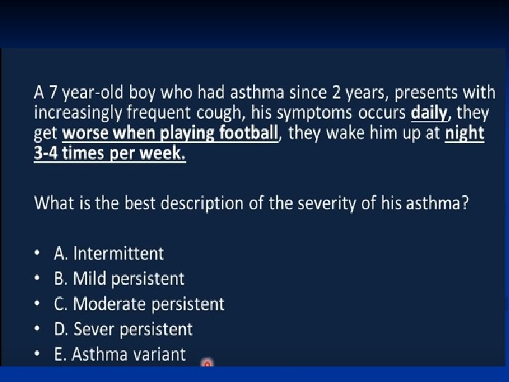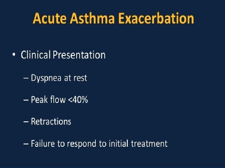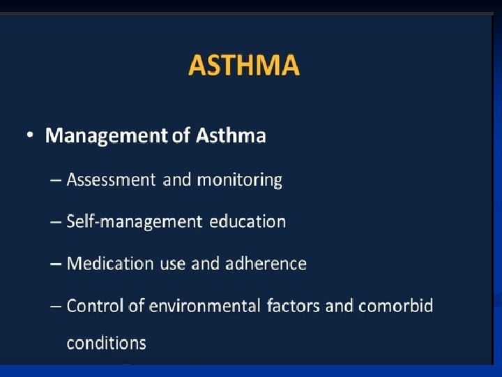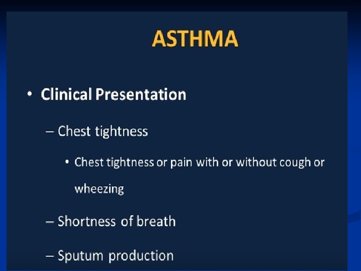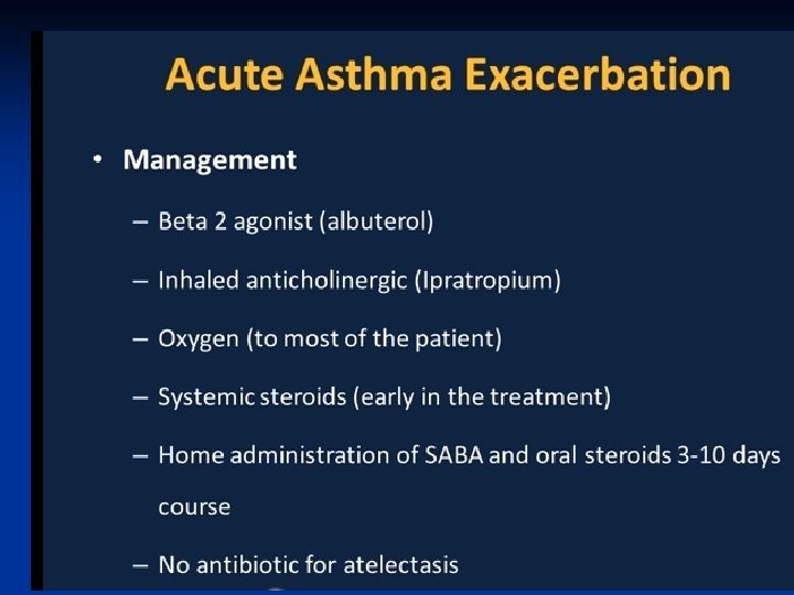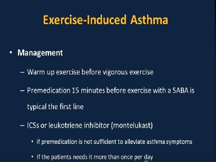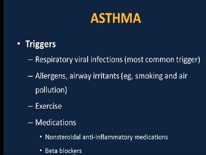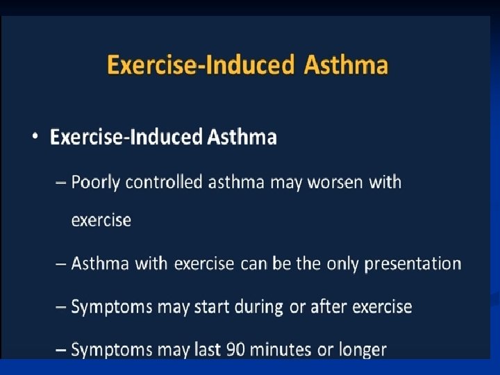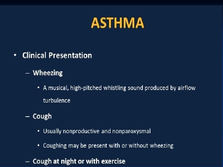 Pathogenesis ■ Airway inflammation also contributes to airflow limitation, which includes: • Bronchoconstriction • Edema • Chronic mucus plugging • Airway wall remodeling ■ All this leads to bronchial obstruction