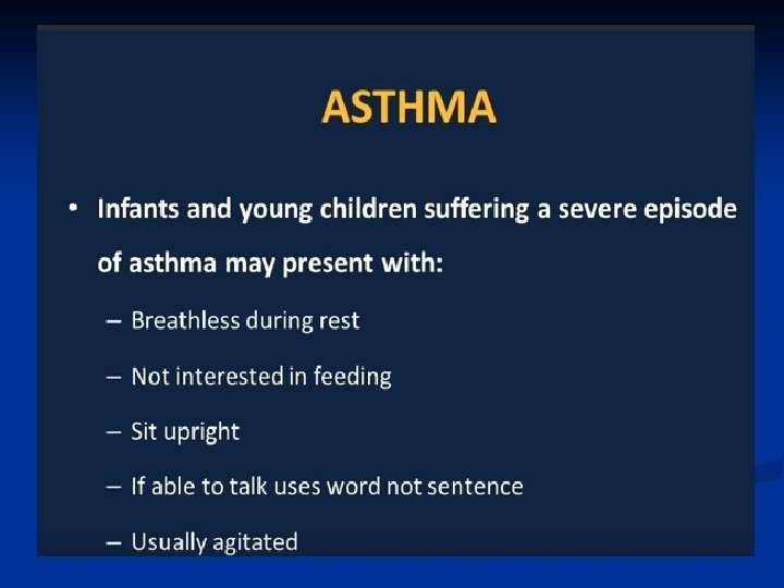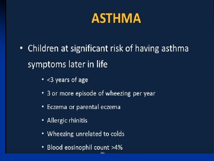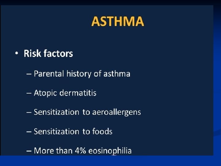 Asthma: Overview ■ Chronic inflammatory disease of the airway ■ More than 70% also have allergies ■ Prevalence has increased by almost 40% in all ages in the past decade. ■ Typically develops in childhood-50% before 3 years of age, and the majority before 8 years of age. ■ 470, 000 hospitalizations per year