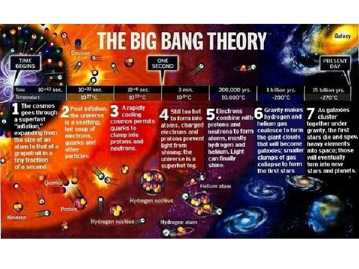 Support for the Big Bang Theory https: //www. youtube. com/ watch? v=HY 2 R 2 d 6 AVPM • Red shifts • Cosmic background radiation – Radio signals coming from every direction in space. – Believed to be created by the big bang explosion.