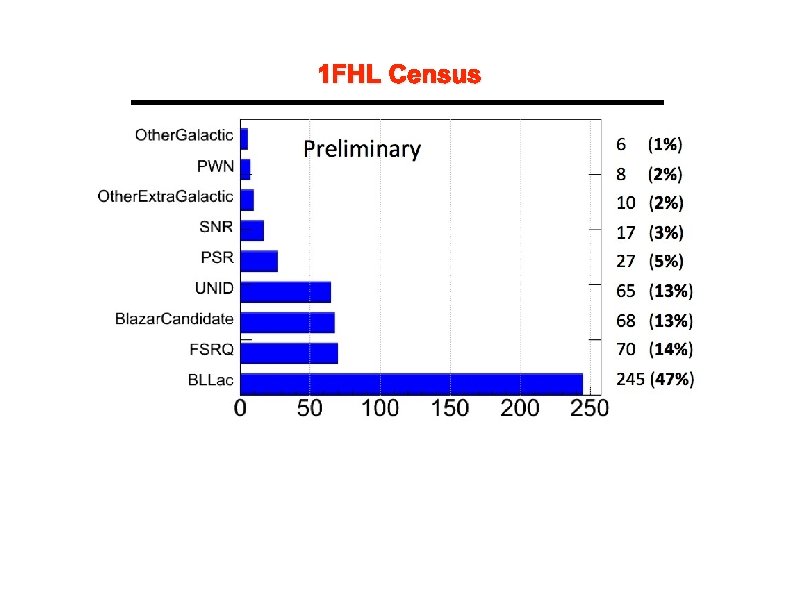< 100 m. Jy 8 GHz 20 GHz 30 GHz > 100 m. Jy FSRQs BL Lacs Significant correlation between radio and gamma-ray (e. g. , Ackermann et al. 2011, Ghirlanda et al. 2010, Lister et al. 2011, Lindford et al. 2011) FSRQs on average brighter and apparently more luminous in radio than BL Lacs (but severe redshift incompleteness)