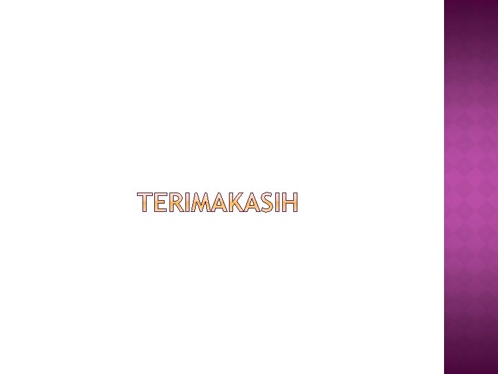 DIAGNOSA KEPERAWATAN Gangguan perfusi jaringan b/d penurunan oksigenasi ke sel – sel ditadai dengan pasien mengatakan kepala terasa pusing, warna kulit pucat, bibir tampak kering, sclera ikterik , ekstremitas dingin. Tujuan : gangguan perfusi jaringan teratasi dengan kriteria • Tanda vital normal • Ektremitas hangat • Warna kulit tidak pucat • Sclera tidak ikterik • Bibir tidak kering • Hb normal 12 – 16 gr% INTERVENSI KEPERAWATAN 1. Observasi Tanda Vital. 2. Observasi perfusi : Warna Kulit, rabaan, dan sensasi. 3. Tingkat Kesadaran. 4. Atur Posisi Semi Fowler. 5. Pemberian O 2. 6. Kolaborasi Dengan Dokter Pemberian Tranfusi Darah. 7. Cek Hb serial post trafusi darah.
