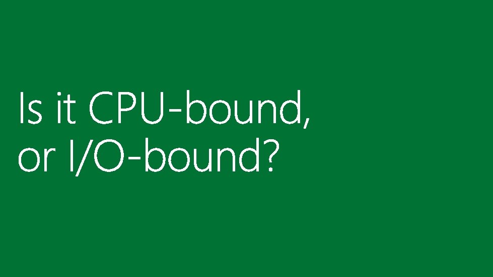From the method signature (how people call it) Foo(); var task = Foo. Async(); From the method implementation (what resources it uses) void Foo() { for (int i=0; i<100; i++) Math. Sin(i); } async Task Foo. Async() { await client. Download. Async(); }