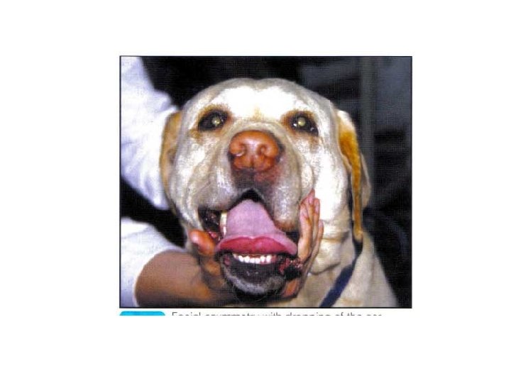 Ataxia VESTIBULAR Central Periférica • Inclinação da cabeça (ipsilateral ou contralateral) • Déficits de nervos cranianos (exceto VII e VIII) • Nistagmo vertical • Distúrbios de comportamento • Convulsões • Déficit proprioceptivo. • Inclinação da cabeça (apenas ipsilateral). • Déficit de nervos cranianos • (apenas VII e VIII) • Nistagmo horizontal c/ fase rápida contralateral. • Nistagmo rotatório • Síndrome de Horner Ipsilateral