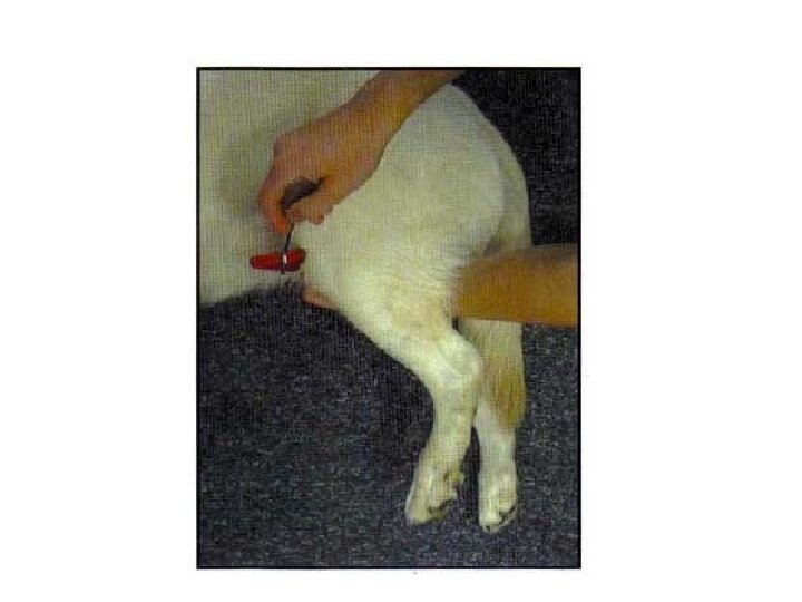 Ataxia PROPRIOCEPTIVA • Lesão no córtex cerebral – Alteração de comportamento – Andar em círculos ipsilateral à lesão. – Hemiparesia contralateral à lesão. – Déficit proprioceptivo contralateral à lesão – Convulsões – Cegueira – Reações diminuídas • Ameaça (contralateral à lesão) • Estímulo do septo nasal