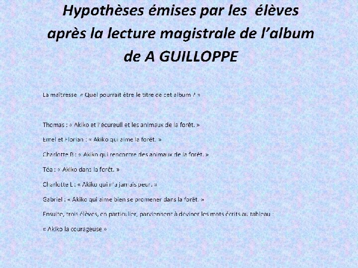 L’ALBUM DE A. GUILLOPPE LU AUX ÉLÈVES DE LA CLASSE