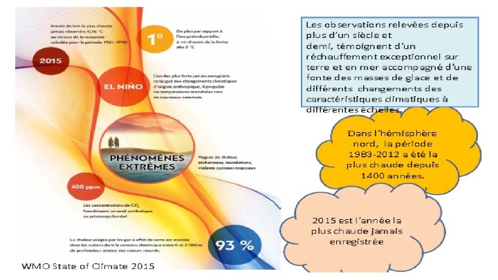 Dans ce sens, L'Organisation Météorologique Mondiale (OMM) a adopté, lors de son Congrès extraordinaire du 29 au 31 Octobre 2012 à Genève, un plan de mise en œuvre du Cadre Mondial pour les Services Climatologiques (CMSC) sous la supervision d'un Conseil intergouvernemental des services climatologiques, constitué des pays membres de l’OMM.