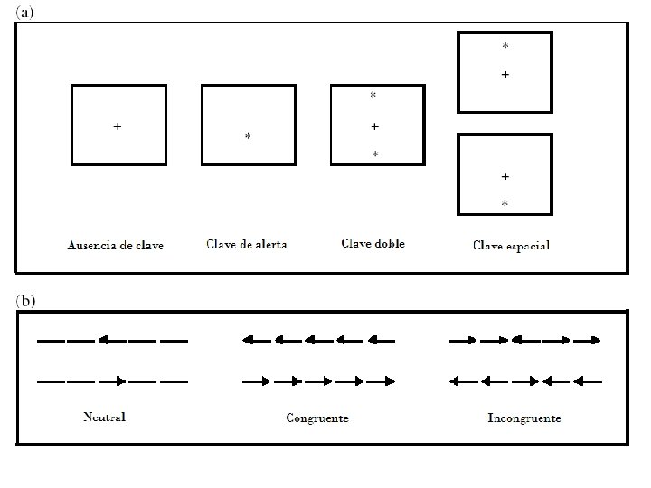 Otras tareas • • • Tiempo de reacción simple Tiempo de reacción de decisión Perceptual Vigilance Task Test of Variables of Attention Conners Continuos Performance Task Test del reloj Stroop Attentional Network Task Detección de cambio
