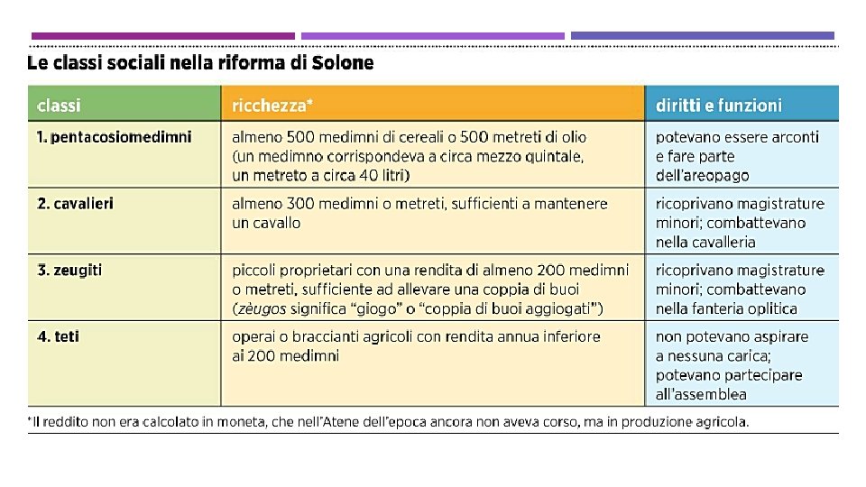 LA RIFORMA DI SOLONE on o c sa attiv s re tro p p re So tto e eff Possesso della terra VII secolo Tensioni sociali Ipoteche sulle proprietà Schiavitù per debiti Seisàchtheia «scuotimento dei pesi» 594 -593 a. C. SOLONE ARCONTE