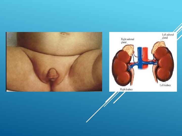 ▪ ▪ ▪ HIPERPLASIA CONGÊNITA SUPRA RENAL (17 -hidroxi-progesterona (17 OHP)) Doença metabólica, resultante de um bloqueio enzimático na biossíntese do cortisol, no córtex adrenal, levando a redução na sua secreção; Triagem neonatal: Avaliação dos níveis da 17 OHP 3º-5º dias de vida em papel filtro; Manifestações clínicas, que podem ser divididas em três formas: forma clássica perdedora de sal, forma clássica não perdedora de sal e forma não clássica. Em meninas, isso pode levar ao aparecimento de caracteres sexuais masculinos (pêlos, aumento do clitóris) e, em ambos os sexos, pode levar ou não a uma perda acentuada de sal e ao óbito. O tratamento com corticoides pode reverter esses quadros, quando instituído precocemente. No caso da perda de sal, o tratamento requer a administração de hormônios mineralocorticoides com a máxima urgência.