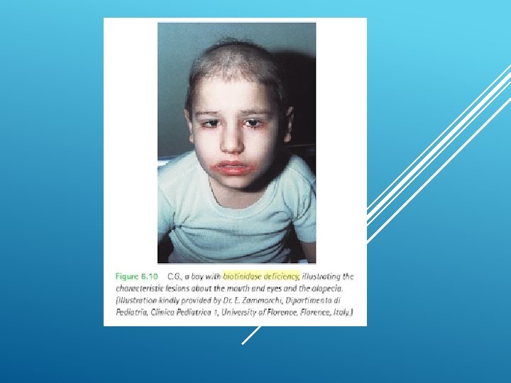 DEFICIÊNCIA DA BIOTINIDASE: ● É um defeito congênito no metabolismo da vitamina biotina. ; ● Clinicamente esta doença manifesta-se a partir da sétima semana de vida com distúrbios neurológicos e cutâneos tais como crises epiléticas, hipotonia, microcefalia, atraso do desenvolvimento neuropsicomotor, alopecia e dermatite eczematoide. Nos pacientes com diagnóstico tardio observam-se, distúrbios visuais, auditivos, assim como, atraso motor e de linguagem. ● Pacientes diagnosticados em período sintomático, frequentemente apresentam atraso do desenvolvimento e risco de desenvolverem sequelas auditiva, visual e de funções nervosas superiores irreversíveis, ao contrário do que se observou nos pacientes diagnosticados no período neonatal. ● O tratamento medicamentoso é muito simples, de baixo custo e consiste na utilização de biotina (vitamina H) em doses diárias de acordo com a subclassificação da deficiência de biotina, baseada no teste quantitativo. PREFEITURA DO RIO DE JANEIRO / SECRETARIA MUNICIPAL DE SAÚDE