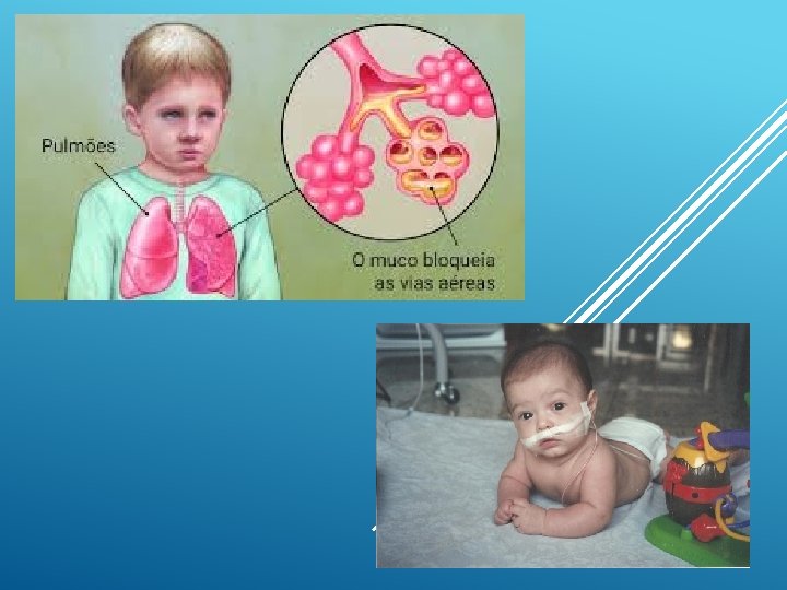 FIBROSE ● Doença hereditária que afeta. CÍSTICA: especialmente os pulmões e o pâncreas, num processo obstrutivo causado pelo aumento da viscosidade do muco. Nos pulmões: bloqueia as vias aéreas propiciando a proliferação bacteriana (especialmente pseudomonas e estafilococos), o que leva à infecção crônica, à lesão pulmonar e ao óbito por disfunção respiratória. ● No pâncreas: Obstrução dos ductos pancreáticos pela secreção espessa, há uma perda de enzimas digestivas, levando à má nutrição. ● Quadro por vezes assintomático por semana, meses ou anos; ● Apresentação clínica: Síndrome íleo meconial envolve distensão abdominal, impossibilidade de evacuação e vômitos, esteatorreia, dificuldade de ganho de peso, problemas respiratórios, perda de sal pelo suor, dor abdominal recorrente, icterícia prolongada, edema hipoproteinêmico, pancreatite recorrente, cirrose biliar, acrodermatite enteropática e retardo no desenvolvimento somático. ● Alto índice de mortalidade elevado, porém, nos últimos anos, o prognóstico tem melhorado muito, mostrando índices de 75% de sobrevida até o final da adolescência e de 50% até a terceira década de vida. ● Tratamento: acompanhamento médico regular, suporte dietético, utilização de enzimas pancreáticas, suplementação vitamínica (vitaminas A, D, E, K) e fisioterapia respiratória, antibióticoterapia de amplo espectro. Além do esquema vacinal habitual e especial: a imunização anti-pneumocócica e anti-hemófilos.