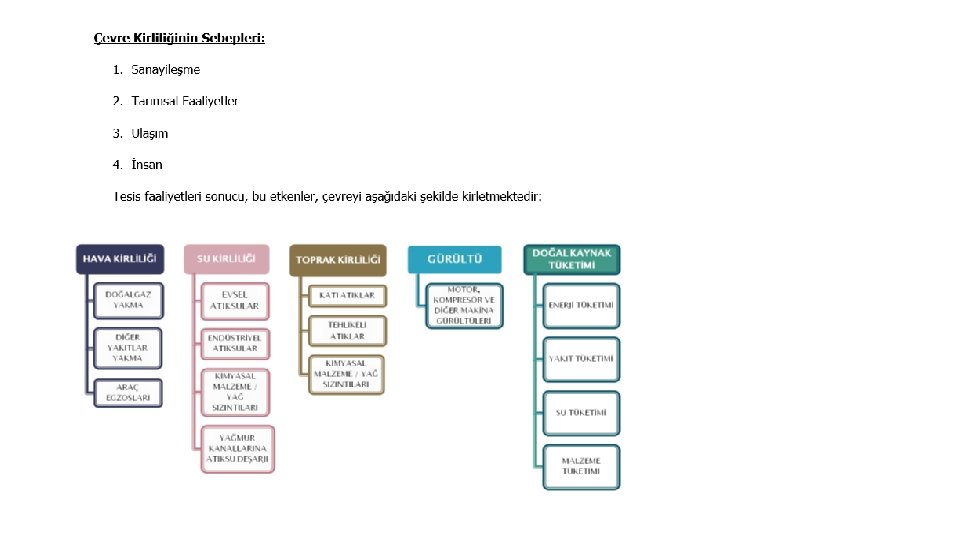 Oldukça sınırlı miktarda olan su kaynaklarımız; 1. Sanayileşme, 2. Şehirleşme, 3. Nüfus artışı, 4. Zirai mücadele ilaçları (Pestisit) ve kimyasal gübreler kullanımı faaliyetleri sonucunda kullanım kalitesi değişerek kirlenmektedir. Bu kirlilik etkenlerinin en büyük payını sanayileşme almaktadır. Su Kirliliği Kontrolü Yönetmeliği’ne göre sanayilerde su kirliliğini kontrol etmek açısından tüm kirletici kaynakların izin belgesine DÜNYANIN TOPLAM SU KAYNAKLARI TATLI SU 2, 5% TUZLU SU 97, 5% TATLI SULARIN DAĞILIMI BUZULLAR 69, 3% YER ALTI SULARI 30, 3% YERÜSTÜ VE ATMOSFER SULARI 0, 4% İŞYERLERİNDE YASAL ŞARTLARA UYGUN ÇEVRE YÖNETİMİ bağlanması gerekmektedir. İzin belgesi olmayan atıksuyun herhangi bir alıcı ortama ve/veya altyapıya deşarjı yasaktır.