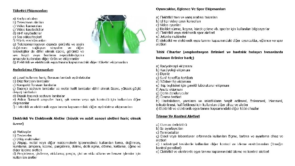 ELEKTRİKLİ VE ELEKTRONİK EŞYA KATEGORİLERİ AYRINTILI LİSTESİ