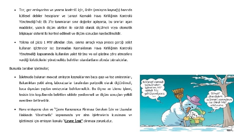 ATIKLAR İLE İLGİLİ BEYANLAR, RAPORLAR VE ATIK YÖNETİM PLANLARI İşletmeler, yıl içerisinde geri dönüşüm ve/veya bertaraf için lisanslı firmalara gönderdikleri tehlikeli atıkları, tehlikesiz atıkları, ambalaj atıklarının beyanlarını bir sonraki yıl Müdürlüğe göndermelidir. • Yıl içerisinde Çevre Lisanslı geri kazanım / bertaraf firmalarına gönderilen Atık yağlar, bir sonraki yılın Şubat ayı sonuna kadar, Atık Yağların Kontrolü Yönetmeliği Ek-2’de bulunan Atık Yağ Beyan Formu ile Müdürlüğe bildirmelidir. • Yıl içerisinde Çevre Lisanslı geri kazanım / bertaraf firmalarına gönderilen tehlikeli atıklar, bir sonraki yılın Mart ayı sonuna kadar, Bakanlıkça hazırlanan internet tabanlı program üzerinden Müdürlüğe beyan edilmelidir. • Yıl içerisinde Çevre Lisanslı geri kazanım / bertaraf firmalarına gönderilen tehlikesiz atıklar ise Bakanlıkça hazırlanan internet tabanlı program üzerinden her yıl Mart ayı sonuna kadar beyan edilmelidir. (Bu yükümlülük 2013 yılı başında başlayacaktır) • Ambalaj Atıklarının Kontrolü Yönetmeliği kapsamında Piyasaya sürenler, miktara bakılmaksızın bir önceki yıl piyasaya sürdüğü, ithal ettiği, ihraç ettiği ürünlerin ambalajları için Piyasaya Süren Müracaat Formunu elektronik yazılım programı üzerinden doldurarak her yıl Şubat ayı sonuna kadar göndermelidir. Bu bildirimi yaparken kaydolduğu yıl dâhil olmak üzere bildirimde bulunmadığı yılları da kapsayacak şekilde yapmalıdır. • Ambalaj Atıklarının Kontrolü Yönetmeliği kapsamında Ambalaj üreticileri, bir önceki yıl ürettiği, ithal ettiği, ihraç ettiği, piyasaya sürdüğü ambalajlar için • Ambalaj Üreticisi Müracaat Formunu, elektronik yazılım programı üzerinden doldurarak her yıl Şubat ayı sonuna kadar Müdürlüğe göndermelidir. • İşletmeler, her 3 yılda bir, tesislerinden kaynaklanan tehlikeli ve tehlikesiz atıklarının miktarının belirlenmesi, tesis içinde geçici depolanması, tesis dışına taşınması ve atıkların geri kazanımına / bertarafına yönelik olarak atık yönetim planı hazırlamak ve hazırladıkları bu planı Müdürlüğe sunmak ve uygulamak zorundadır. • Tehlikeli atık geri kazanım / bertaraf lisanslı firmalar, faaliyetleri hakkında atığın tesise kabul tarihi, atığın kaynağı, miktarı, taşınım türü ve bertaraf/geri kazanım yöntemi gibi bilgileri içeren yıllık raporlarını Müdürlüğe göndermelidirler. • Tüm bu bildirimleri yapan işletmeler, kayıtları tutmak ve 5 yıl boyunca muhafaza etmekle yükümlüdürler.
