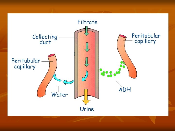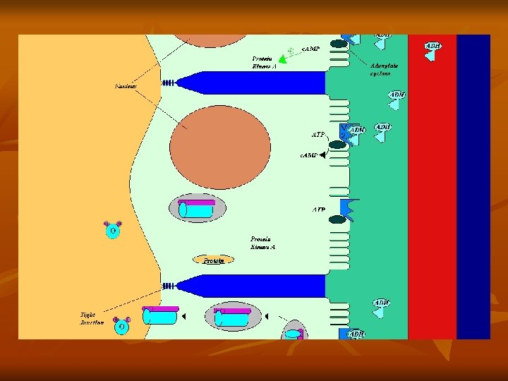 ADH (ANTIDIURÉTICO) n n n Reduz a perda de água pelo corpo; Favorece a reabsorcão pelos túbulos renais para os capilares, mantendo f luido corporal; Estímulos: Baixa osmolalidade (sudorese intensa) Baixo volume plasmatico (perdas sanguíneas e/ou reposicão hídrica inadequada; Aumenta em atividades de 60 % VO 2 max.