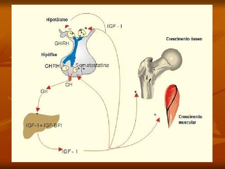 HORMÔNIO DO CRESCIMENTO n n n Efeito profundo em todos os tecidos; Exercício, sono, stress, hipoglicemia causam estímulos hipotalâmicos; GHRH – hormônio liberador; Efeitos: HIPERPLASIA e HIPERTROFIA