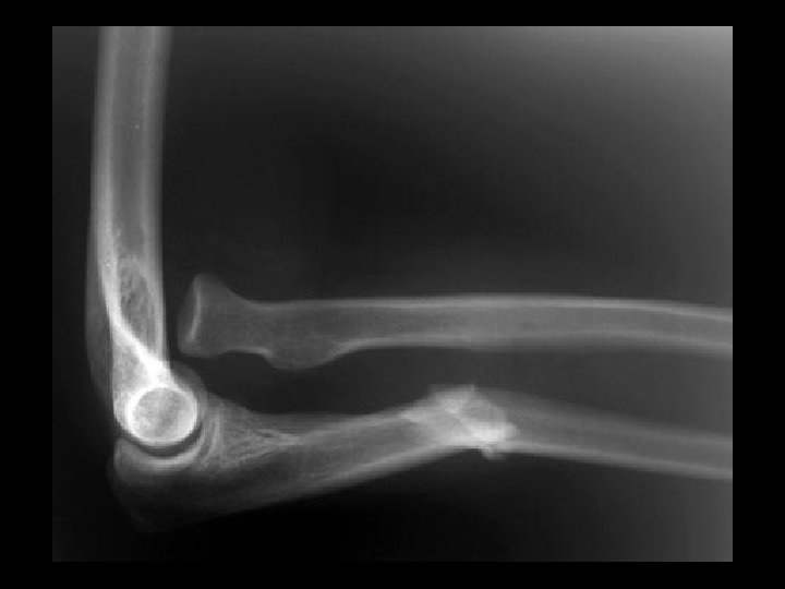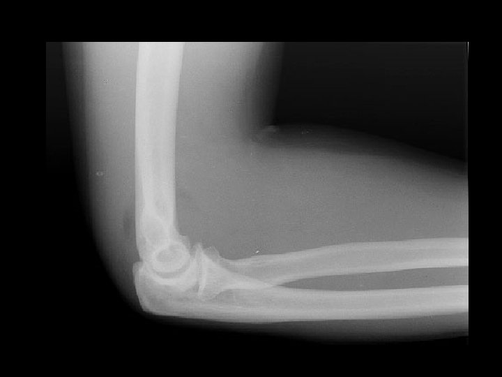 Capitellum fracturedislocation • Findings: – fracture-dislocation of the capitellum – due to direct trauma – second most common site in kids (most common is suprcondylar) • ddx: – NONE! – This is an Aunt Minnie!