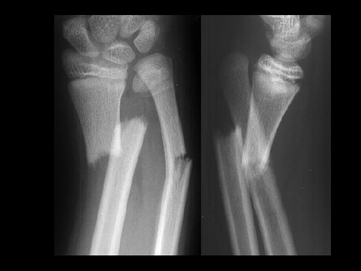 Galeazzi fracture-dislocation • Findings: – Angulated distal radius and ulna fractures – Distal ulnar dislocation • ddx: – NONE! – This is an Aunt Minnie!