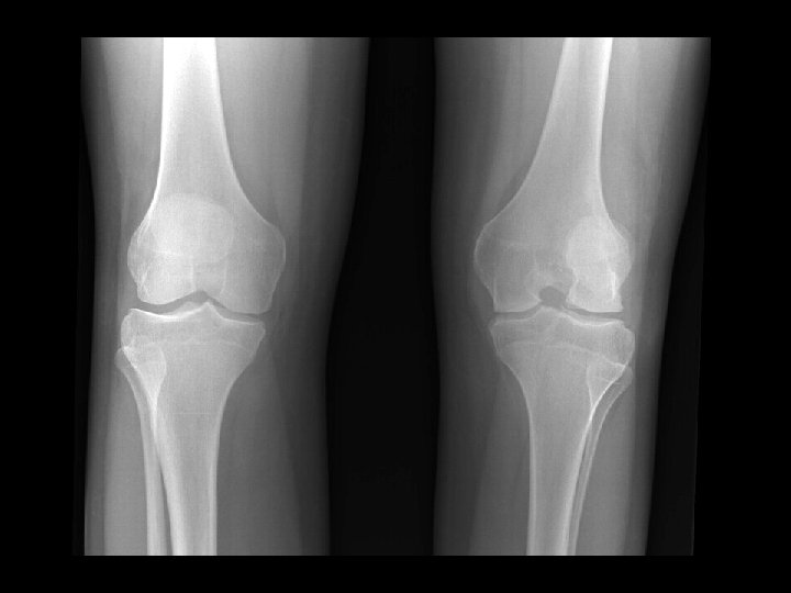 Inflammatory Arthritis • • Findings: – Severe joint space narrowing – Sub-chondral cystic changes and sclerosis – No significant osteophyte formation ddx: – Post-infectious