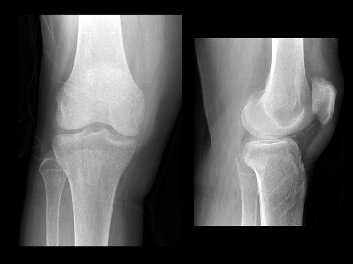 Hyperparthyroidism • Findings: – Subperiosteal absorption along the medial aspect of the proximal tibial metadiaphysis – Subligamentous resorption at the attachments of patellar ligament • ddx: – NONE! – This is an Aunt Minnie!