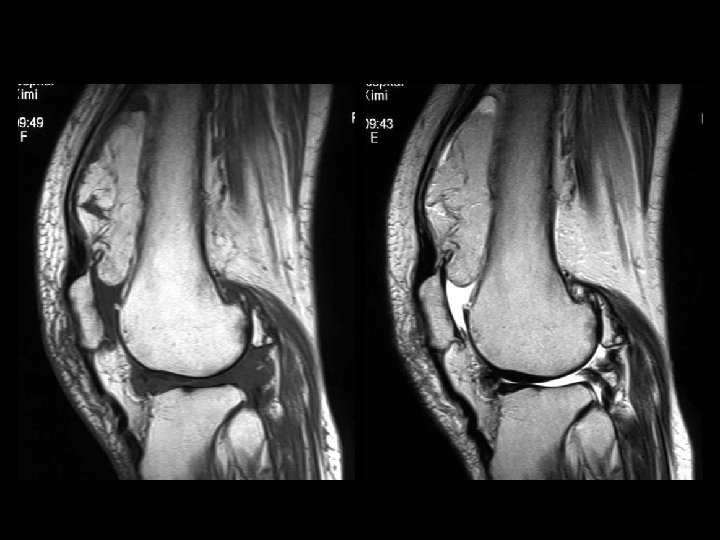 Lipoma arborescens • Findings: – Fatty lesion within the suprapatellar pouch • ddx: – NONE! – This is an Aunt Minnie!