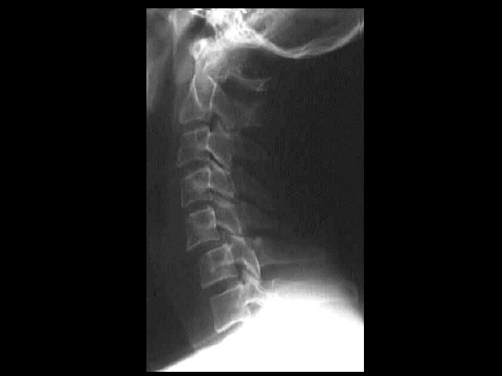 Flexion teardrop fracture • Findings: – anterior teardrop fragment of C 5 – prevertebral soft tissue swelling – widening of C 5 -C 6 interspinous distance – mechanism: hyperflexion and compression (diving accident) – UNSTABLE