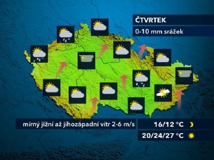 Počasí • okamžitý stav atmosféry • velmi proměnlivé • předpověď – Světová služba počasí • meteorologické stanice, družice