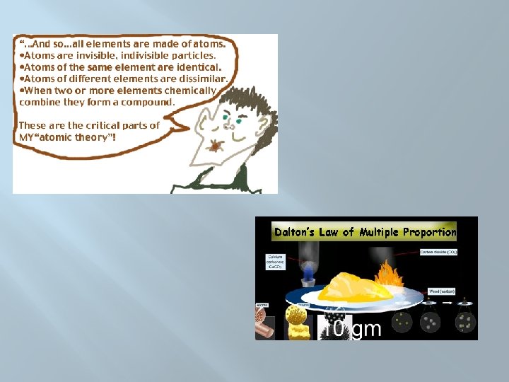 Democritus � Fifth century B. C. Greek philosopher � All matter composed of indivisible and indestructible particles called atoms (Greek for uncuttable). � Though later challenged, many ideas agreed with later theory